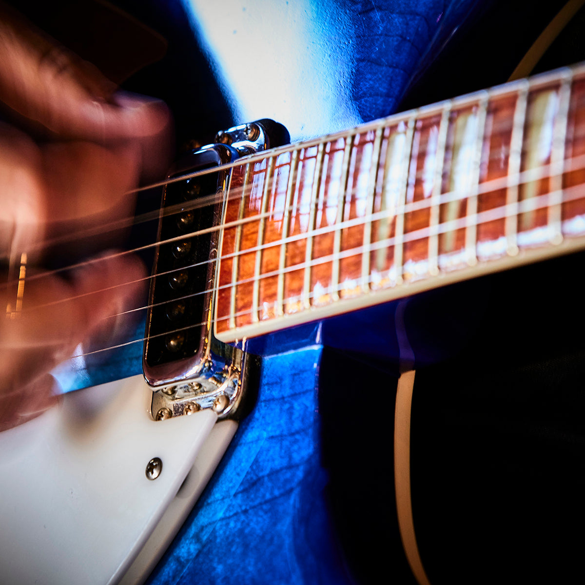A photo of the Blueburst Rickenbacker 360/6 that gave the band its name. Four colors to pick from.